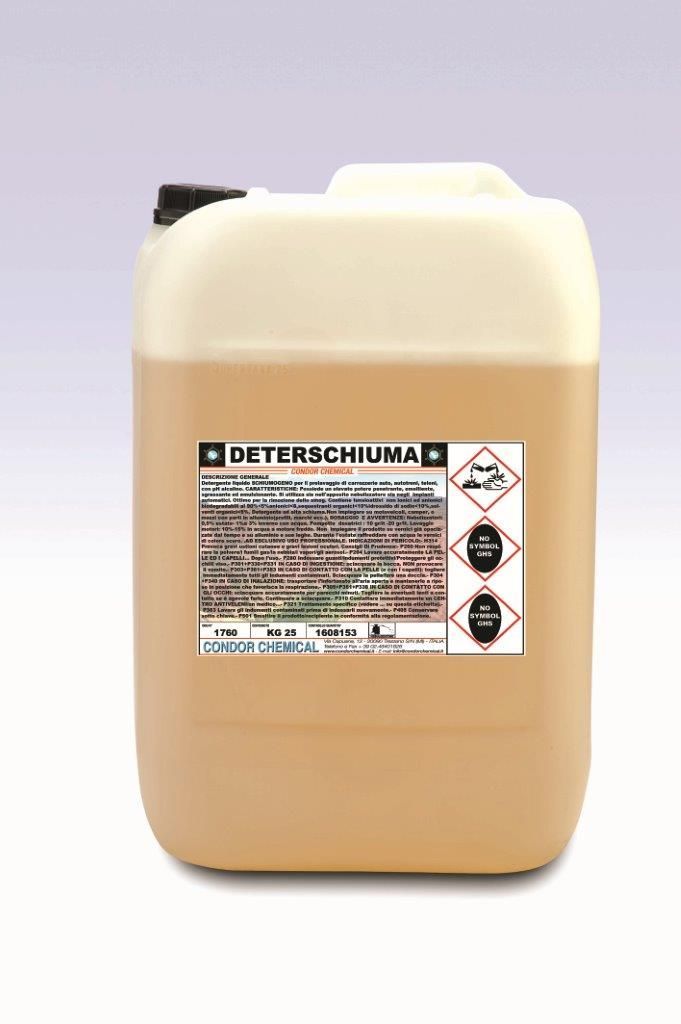 Detergente schiumogeno concentrato per prelavaggio, profumato. L’alta concentrazione consente bassi dosaggi (0,5–1%) con ottima resa: genera schiuma abbondante che aderisce allo sporco e ne facilita il distacco. Ideale anche per impianti a pista con una sola pompa dosatrice che alimenta sia lancia sia spazzola.